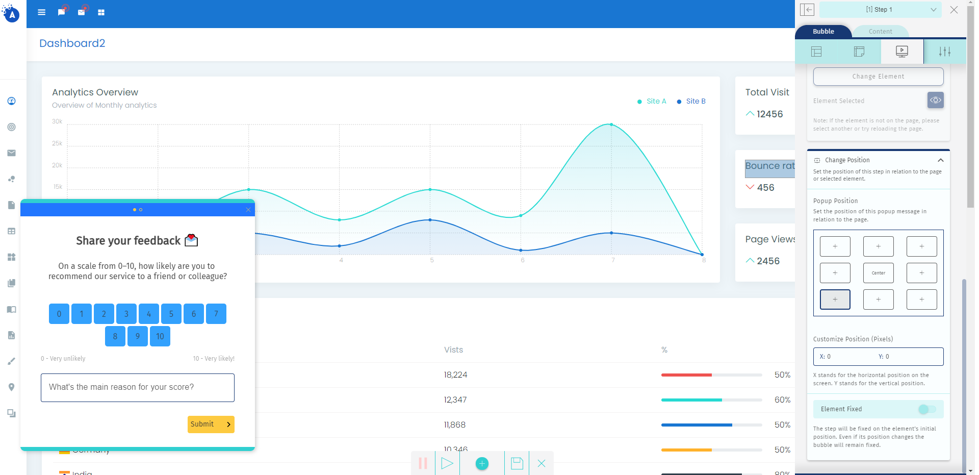 By default, your NPS will appear in the center of the screen. But with a few clicks, you can move it to different places on your page.